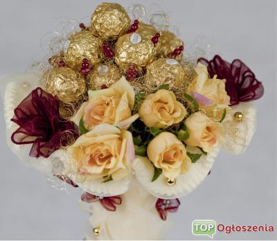 Jesteśmy Firmą zajmującą się Dekoracjami Ze Słodyczy.Nasze przepiekne Bukiety wykonujemy ze słodyczy renomowanych firm jak Raffaello,Chupa Chups itd.