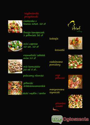 Firma zajmuje się przygotowaniem i dostarczaniem zakąsek zimnych kuchni śródziemnomorskiej i nie tylko. Rozmaite smaki których na co dzień nie zaznasz. Zapewniamy wyjątkowe doznania smakowe pod wielobarwną postacią wykonanych przystawek w przystępnej cenie.