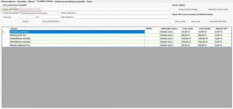 Archiwum faktur, produktów i usług