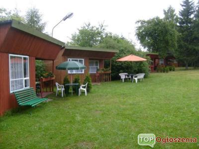 Na malowniczo położonej działce o powierzchni ponad 2000m2 znajduje się 7 domków letniskowych oraz budynek sanitarny. Odległość od jeziora to zaledwie 60m. Do centrum miasteczka dojdą Państwo spacerkiem w niecałe 10 minut. Takie odległości pozwalają cieszyć sie ciszą i spokojem na terenie ośrodka.