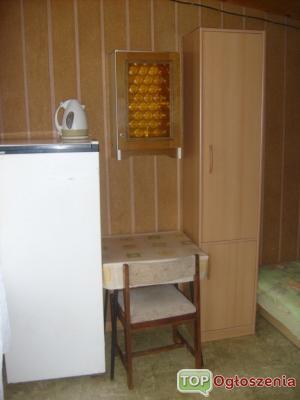 Standardowe wyposażenie naszych domków stanowią: wersalki lub tapczany, szafy i szafki, stolik, krzesła, lodówka, czajnik elektryczny. Do dyspozycji gości jest budynek sanitarny z toaletami i prysznicami.
